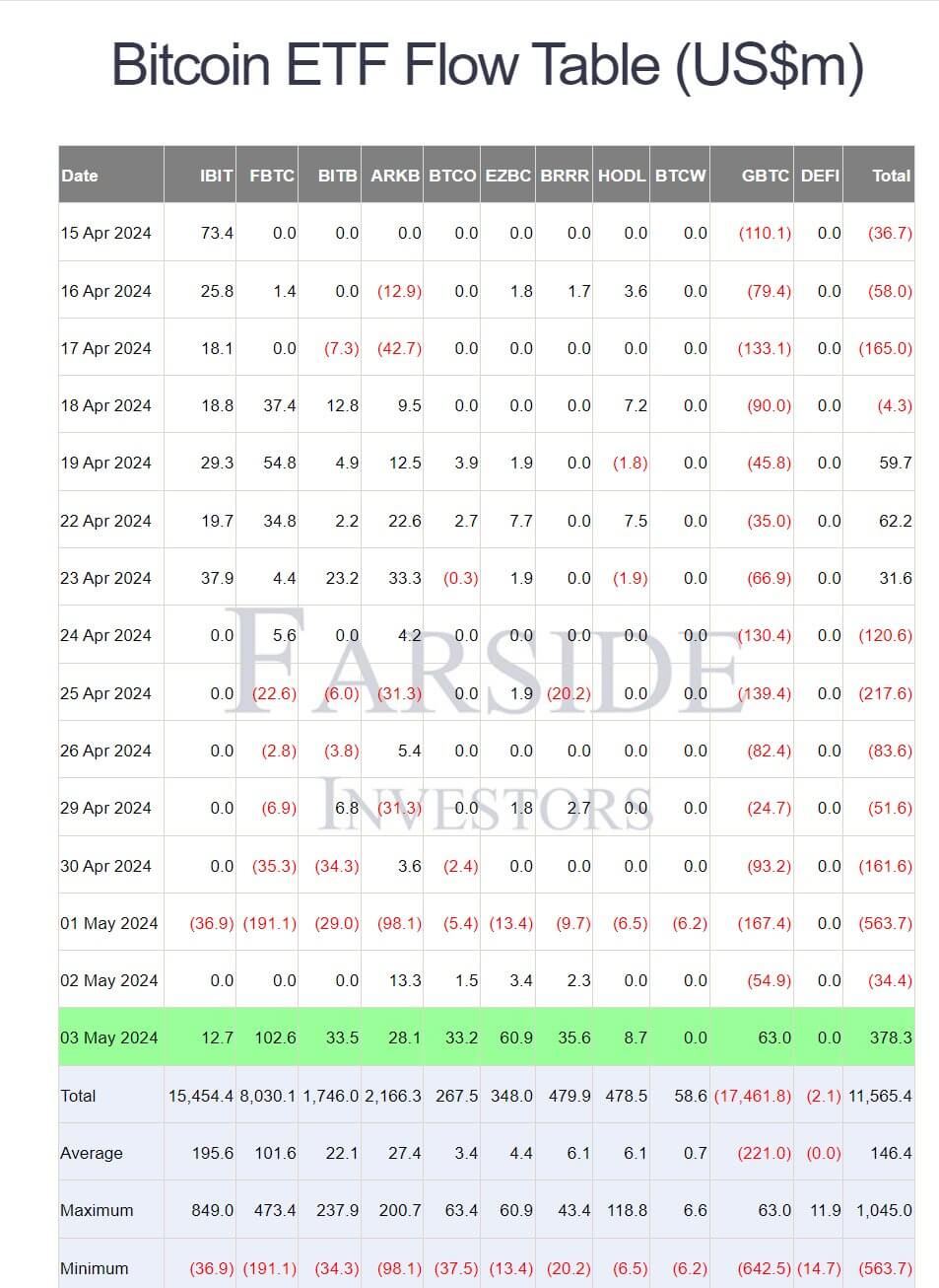 Согласно данным источников Cointelegraph, по итогам пятницы 3 мая чистый приток капитала в GBTC составил 63 миллиона долларов за сутки. При этом со дня листинга новых спотовых Биткоин-ETF в США 11 января 2024 года из фонда GBTC было выведено в общей сложности 17.5 миллиарда долларов.