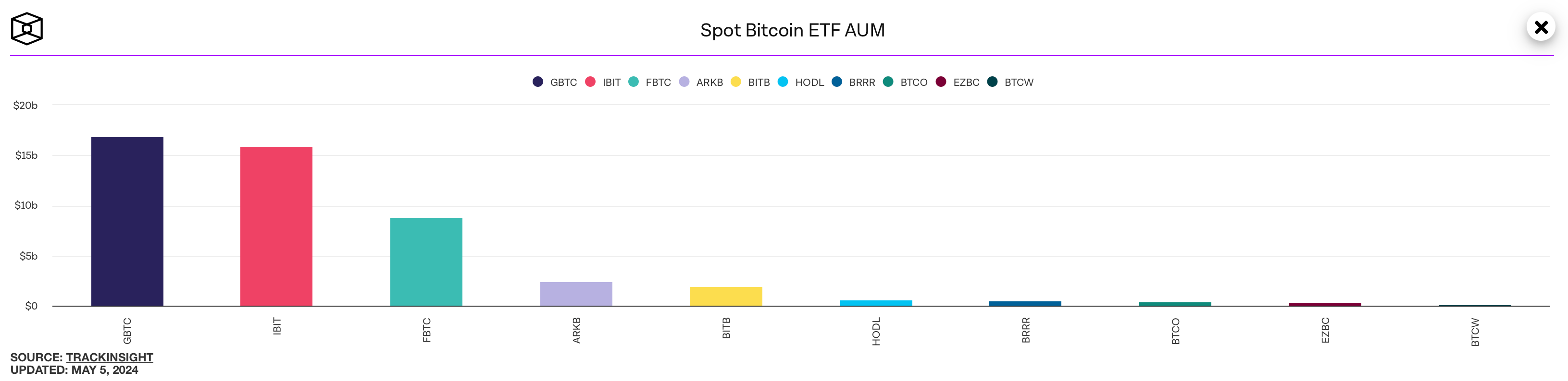 По состоянию на сегодня у ETF от компании Grayscale есть 16.82 миллиарда долларов активов в основе, тогда как показатель IBIT от BlackRock составляет 15.89 миллиарда. Ранее постоянный отток средств из GBTC позволил конкурентам сократить разрыв, в результате чего фонд IBIT стремительно нарастил объём активов под управлением за последние месяцы.