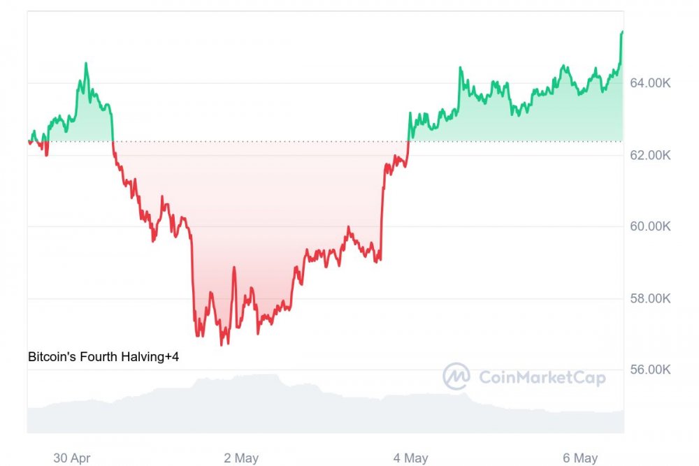 По данным CoinMarketCap, цена Биткоина выросла на 4,87% за последние 7 дней до $65 400 на момент публикации.