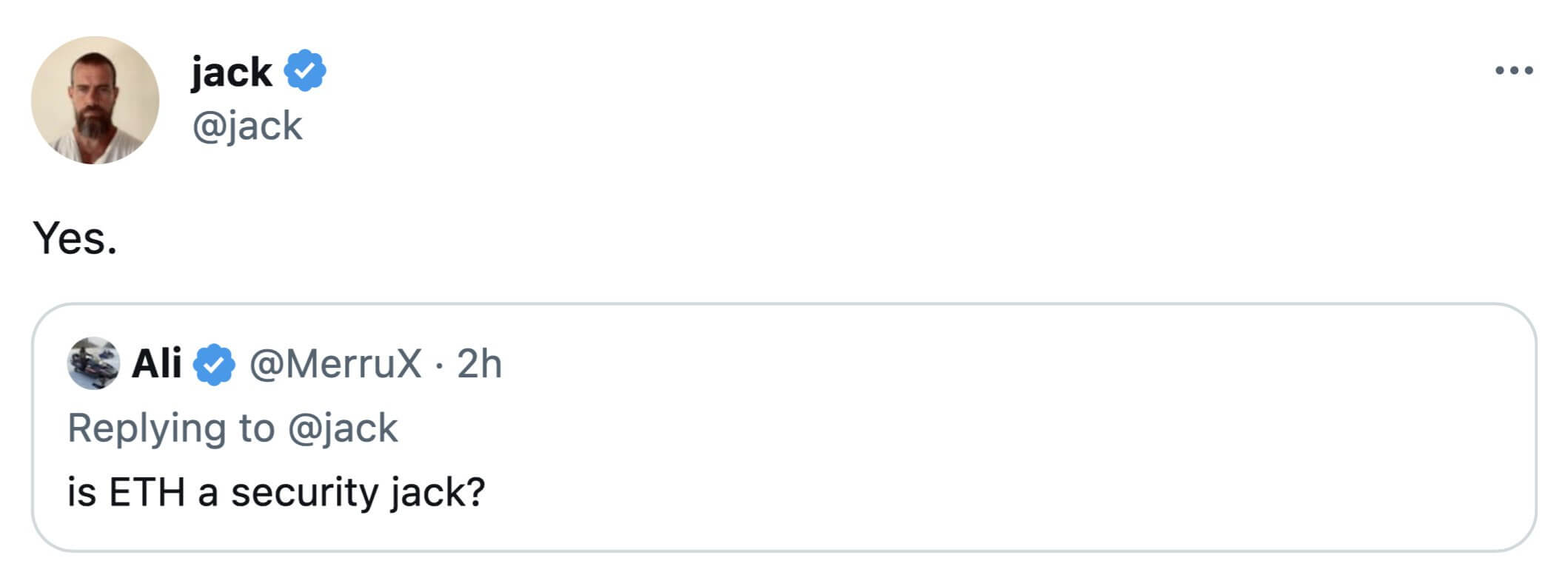 Комментарий сооснователя Твиттера Джека Дорси о якобы принадлежности Эфириума к ценным бумагам