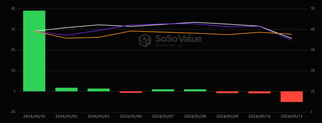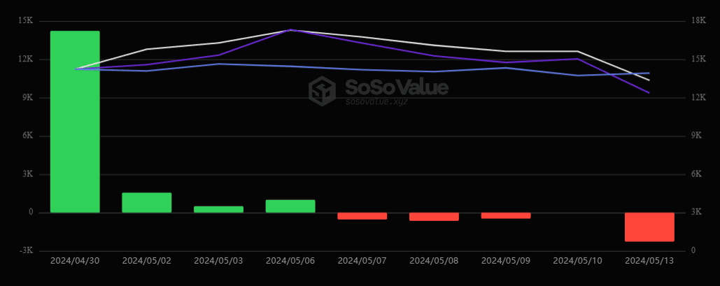 - 13 мая в американском секторе спотовых биткоин-ETF зафиксирован приток капитала, в гонконгском — отток.