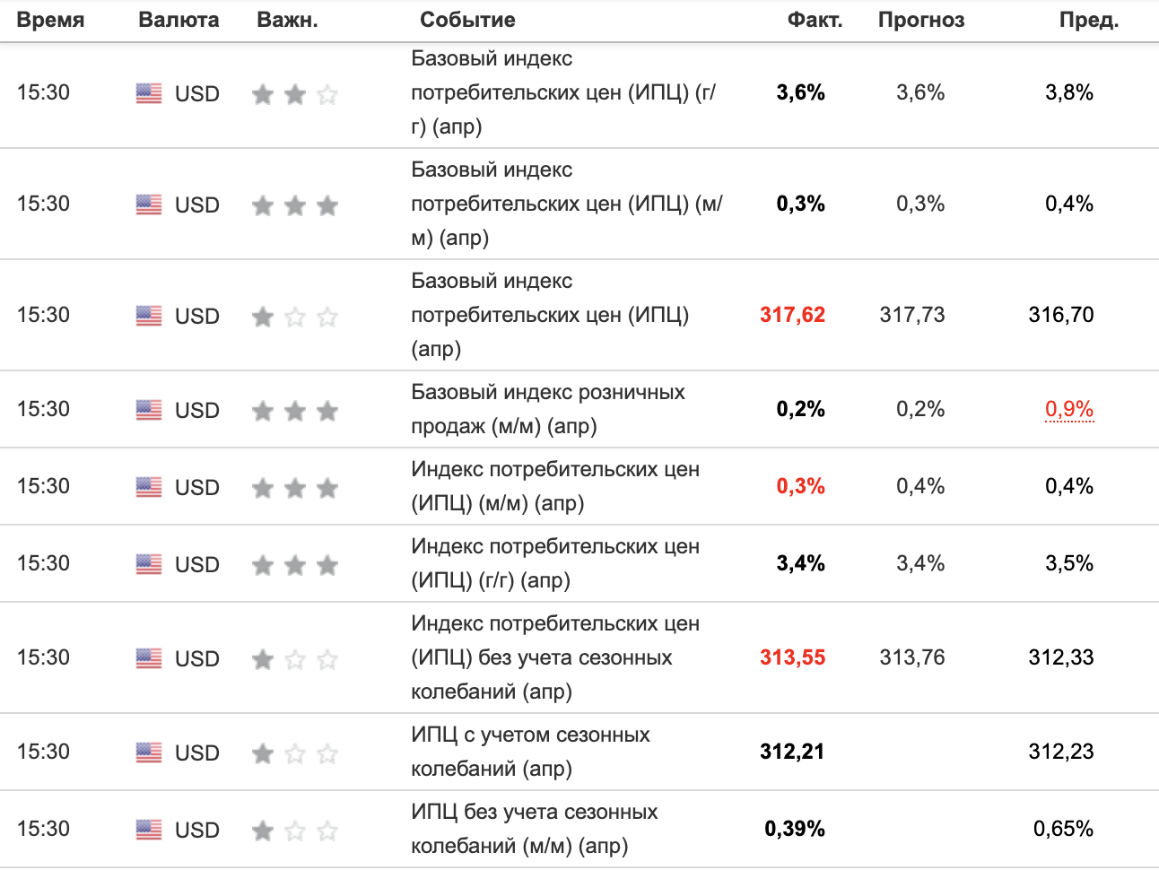Быки получили неожиданную поддержку благодаря последним данным по индексу потребительских цен США (CPI), которые превзошли ожидания. В месячном исчислении CPI в апреле составил 0,3%, что на 0,1% ниже ожиданий, при этом другие цифры соответствуют прогнозам.