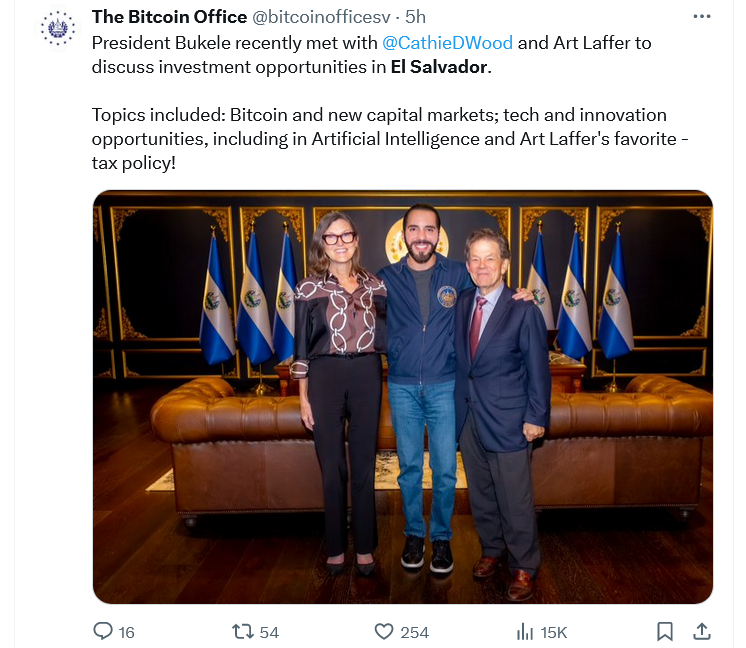 Вуд «познакомила нас с цифрами» того, как Сальвадор может увеличить свой ВВП в 10 раз до 300 миллиардов долларов к 2029 году, сказал Макс Кейзер, который консультирует Букеле по вопросам, связанным с биткоинами.