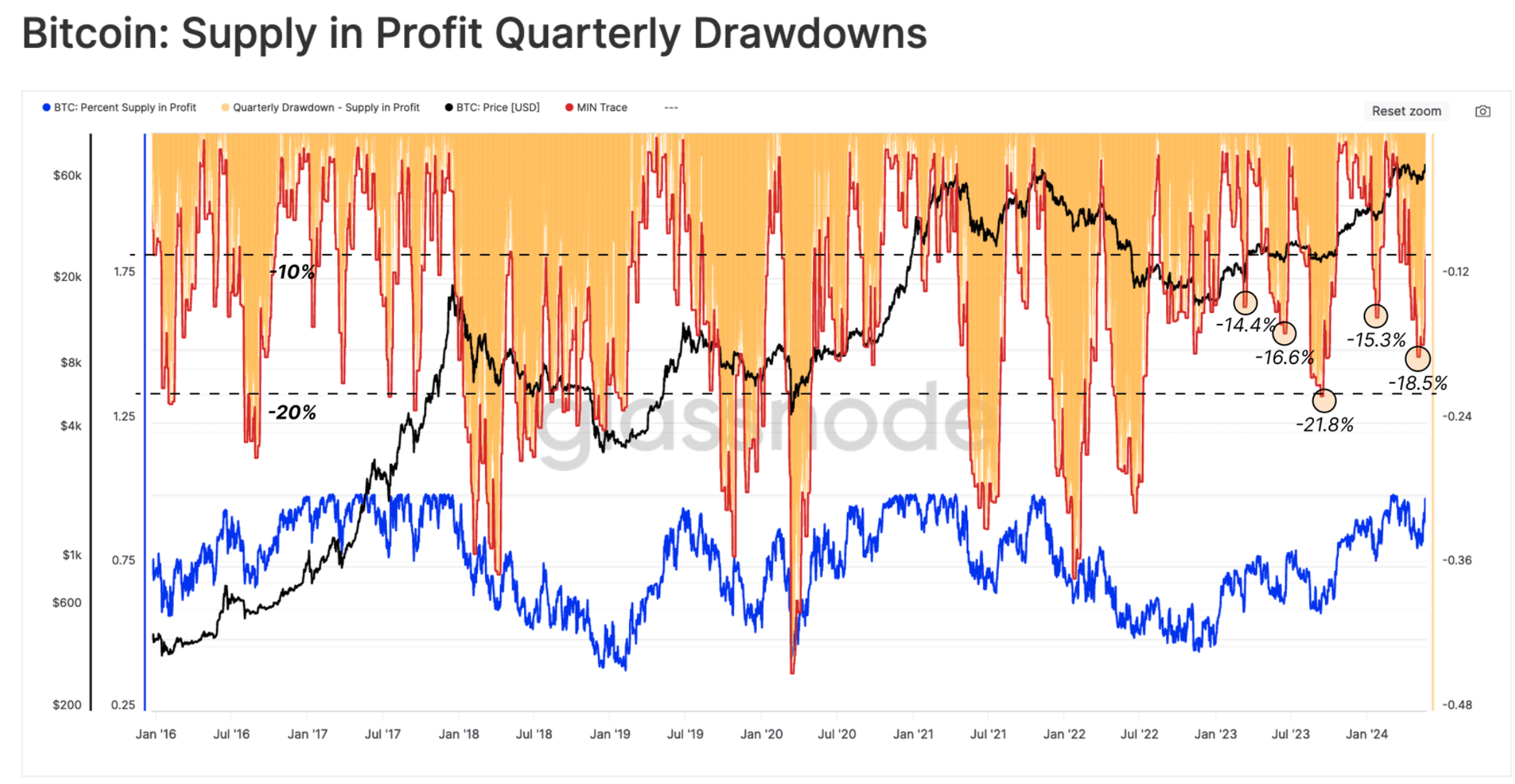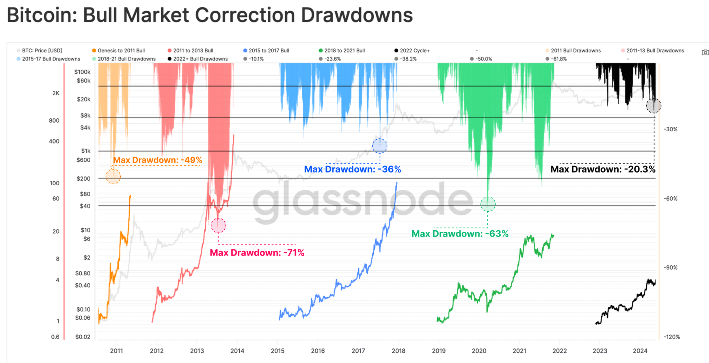 Коррекции курса Биткоина BTC в бычьих циклах
