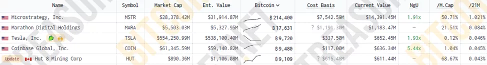 Среди публичных участников рынка лидерами по числу монет на балансе выступает MicroStrategy с 214 400 BTC ($14,39 млрд).