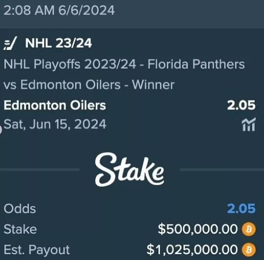 Рэпер рискнул той же суммой в $500 000, спрогнозировав победу «Эдмонтон Ойлерс» в финале НХЛ против «Флориды Пантерз». Потенциальный выигрыш Дрейка составляет $1,025 млн.