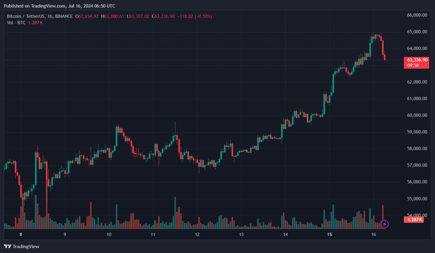 Тем временем курс первой криптовалюты продолжает восстановление после значительной коррекции на прошлой неделе. На момент написания материала стоимость биткоина держится на уровне $63 336, по данным TradingView. Рыночная капитализация актива составляет $1,25 трлн.