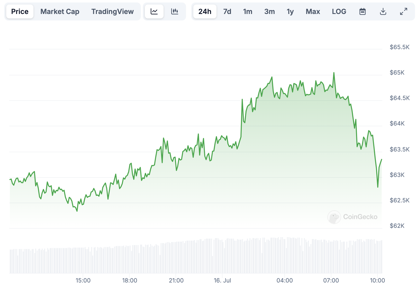 «Цифровое золото» тем временем торгуется по $63 324. Согласно CoinGecko, за последние сутки курс актива вырос на 0,6%, а за неделю — более чем на 10%.
