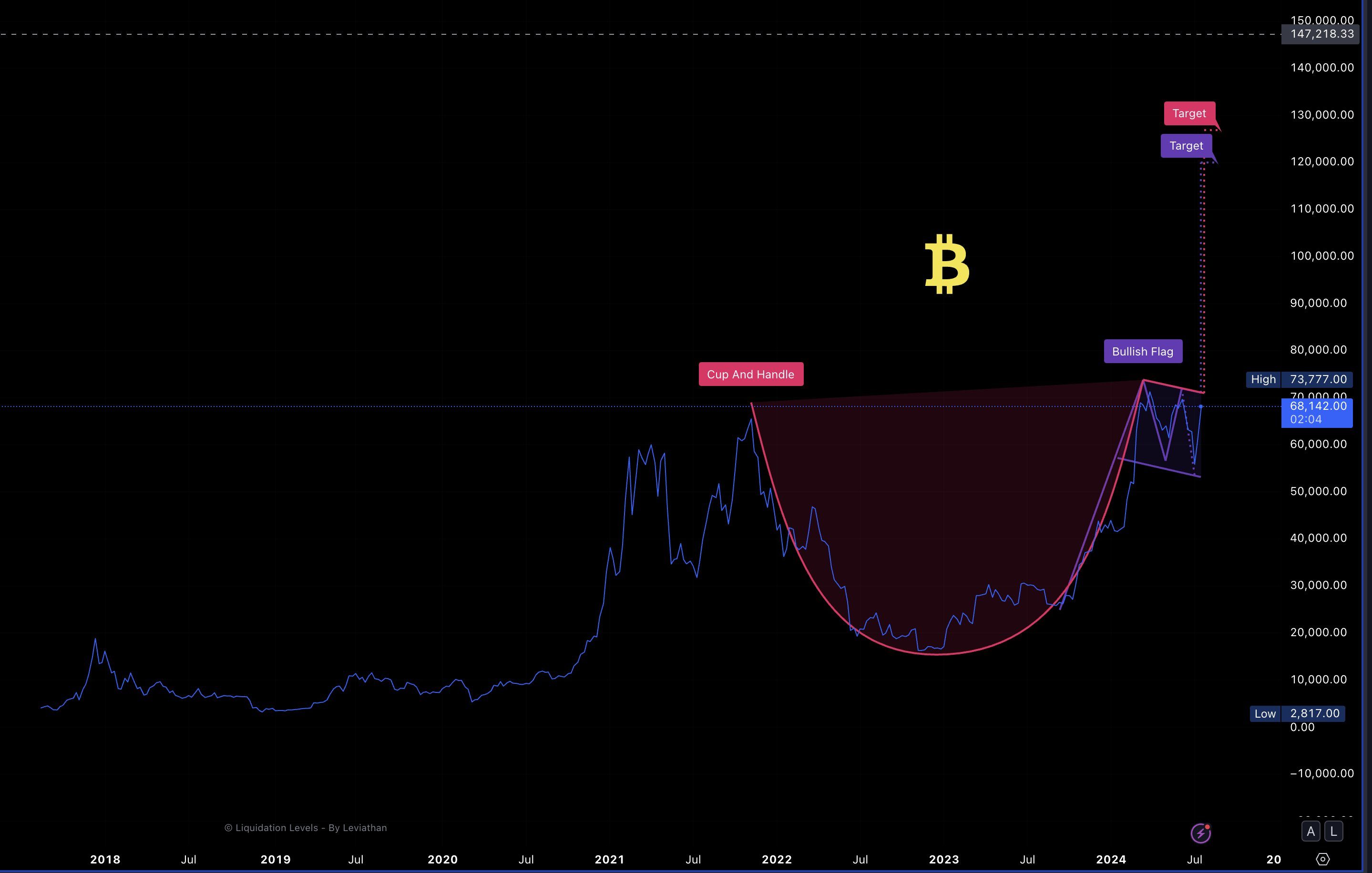 Похожим прогнозом биткоина поделился трейдер “Coosh” Alemzadeh. Он видит потенциал для обновления абсолютного максимума BTC в августе с последующим взрывным ростом, который сможет вывести криптовалюту к уровням близ $260 000.