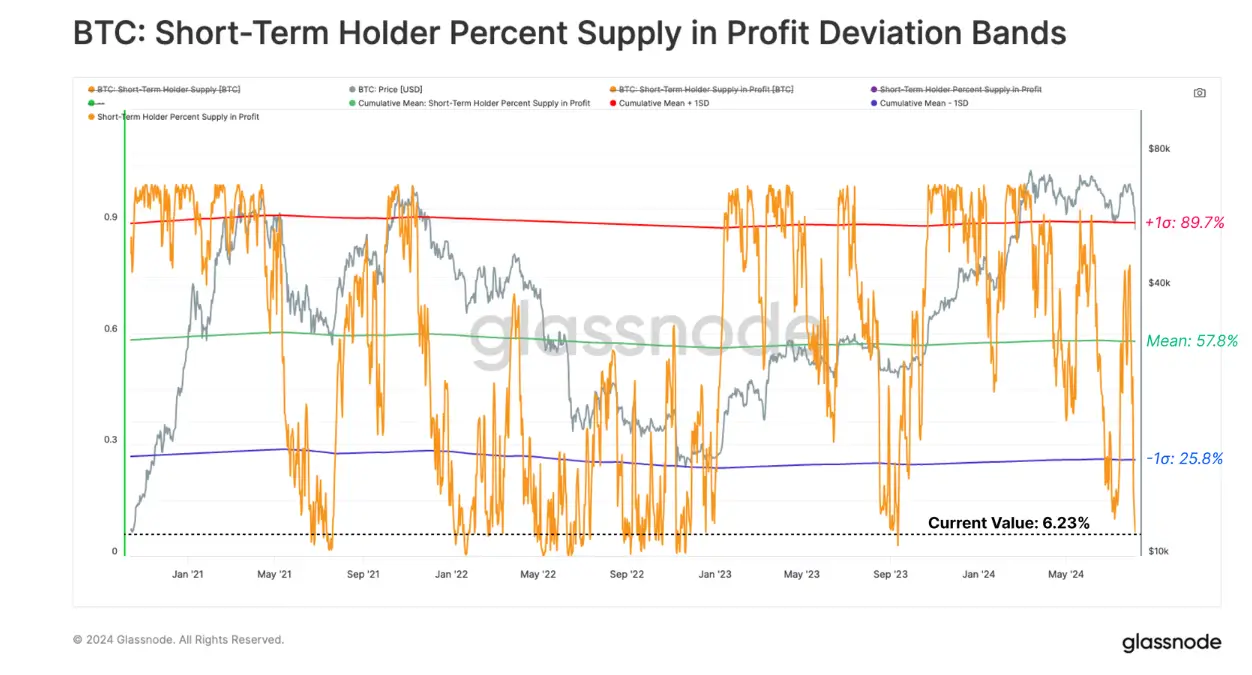 Менее 7 процентов краткосрочных держателей BTC находятся в прибыли