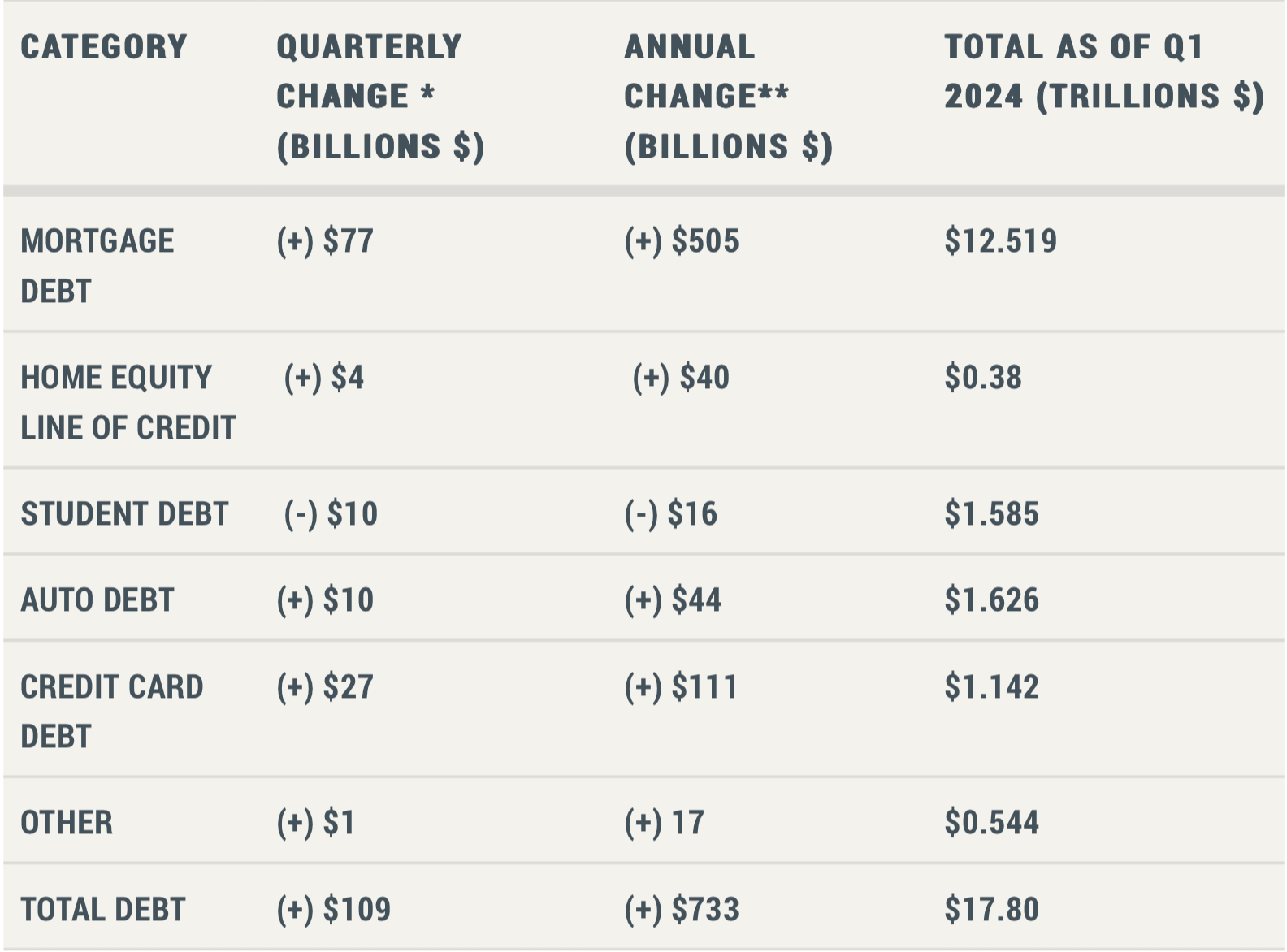 Статистика по задолженности домохозяйств США во втором квартале 2024 года