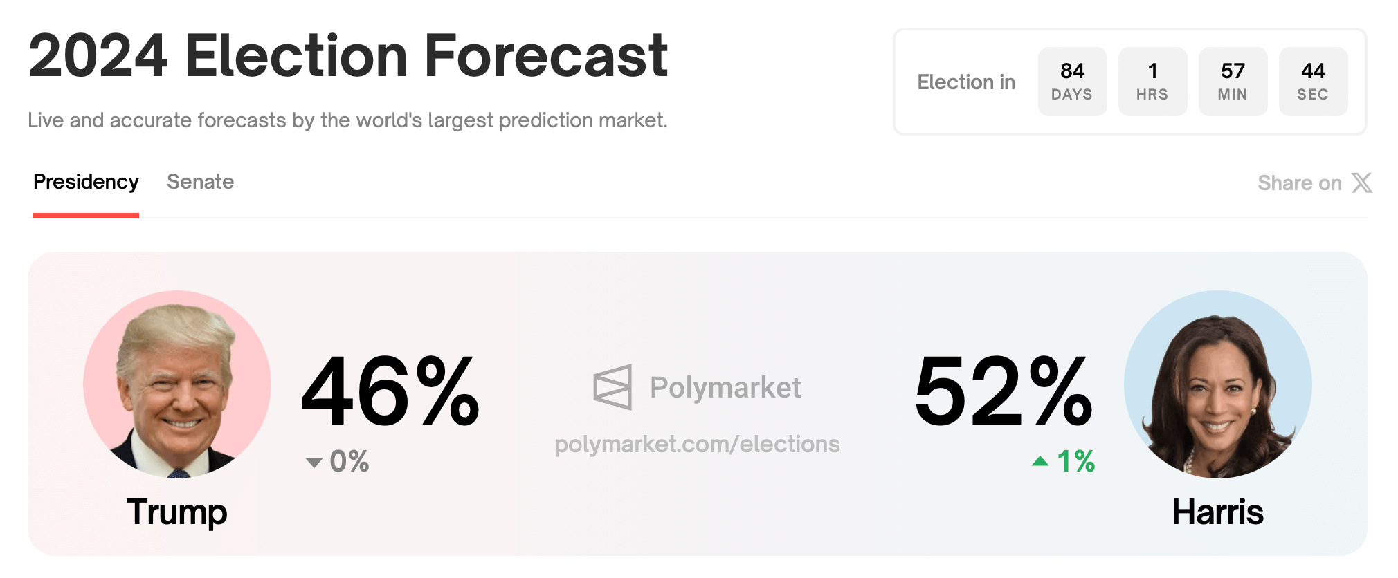 Шансы на победу Харрис и Трампа на платформе Polymarket