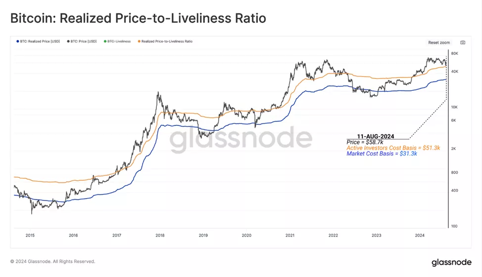 Несмотря на агрессивное распределение с апреля по июль, спотовая цена осталась выше средней стоимости приобретения «активных» монет на рынке (Active Investor Cost Basis). Специалисты рассматривают это значение как порог, разграничивающий бычьи и медвежьи настроения инвесторов.