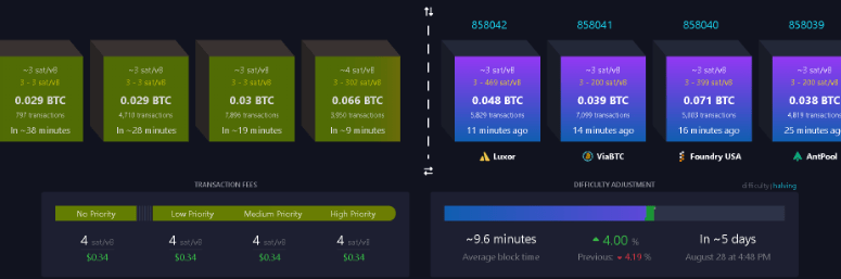 По состоянию на 23 августа средняя комиссия за биткоин-транзакцию равнялась $0,34.