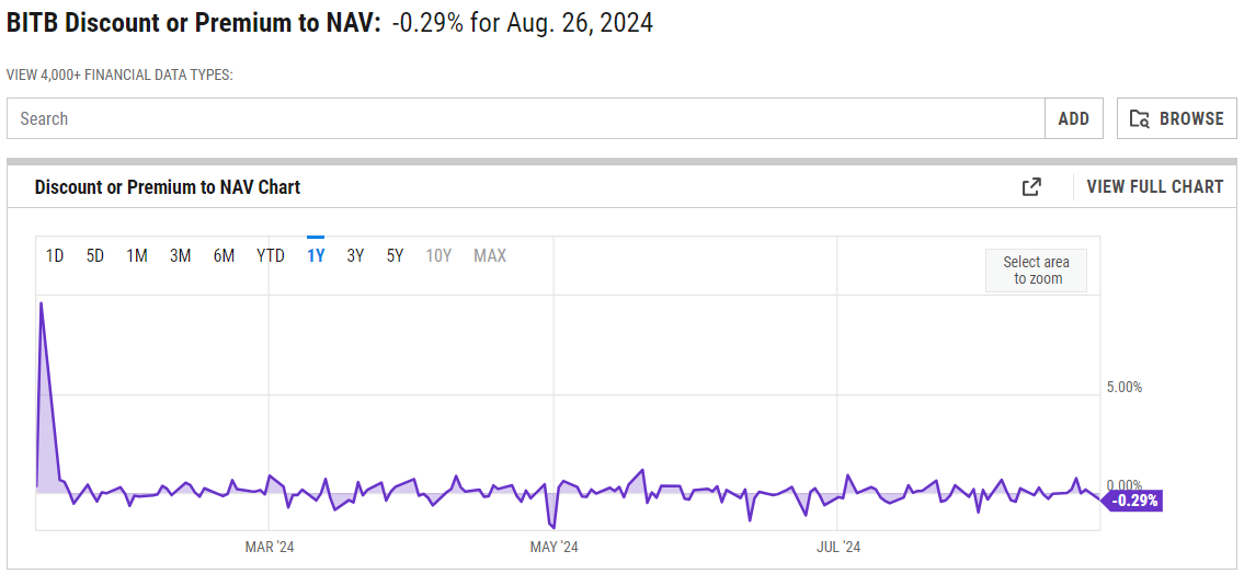 Дисконт BITB Bitwise к NAV. Источник: YCharts.