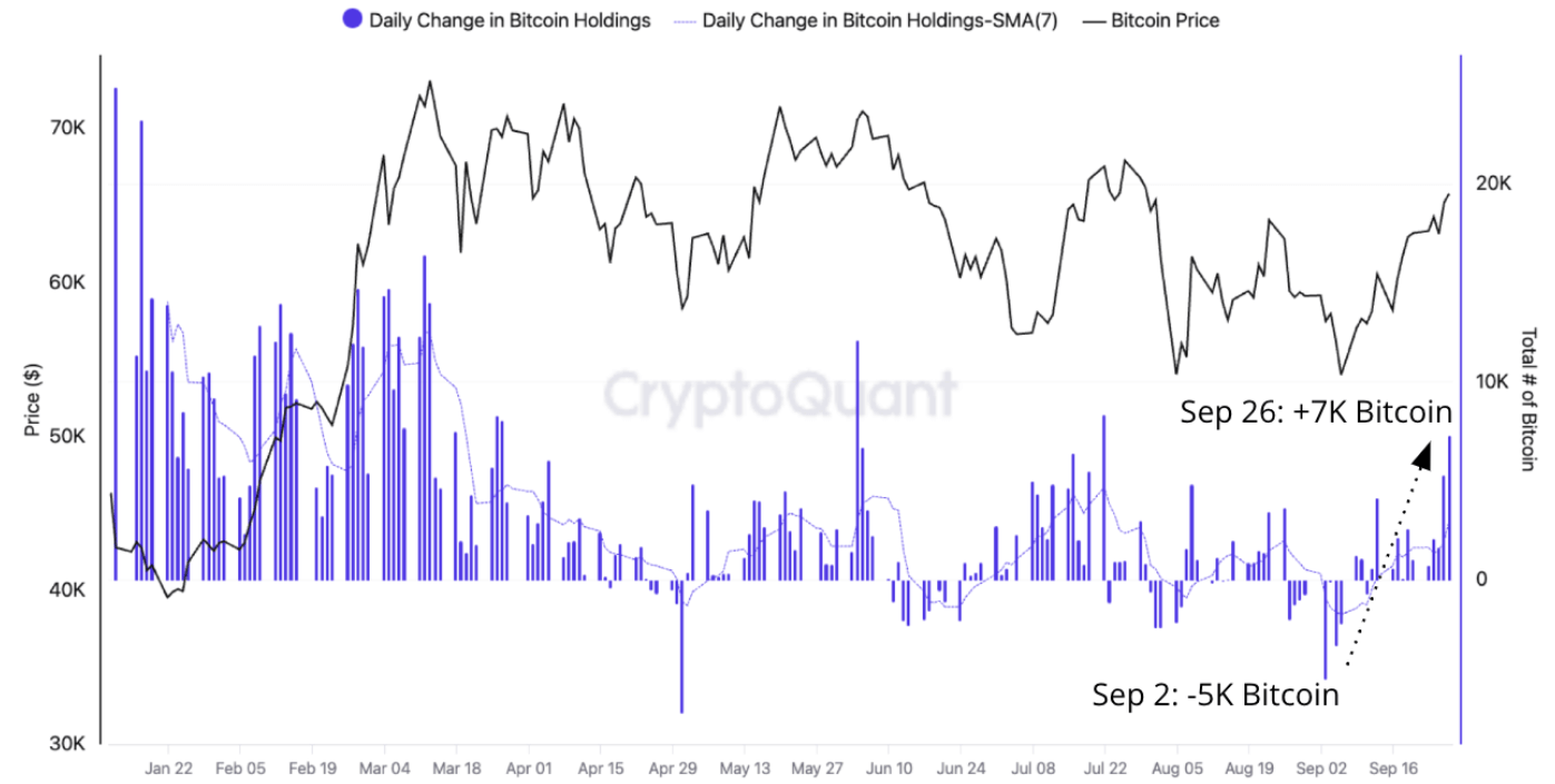 Согласно данным источников Cointelegraph, институциональный спрос через американские Биткоин-ETF является ключевым фактором для дальнейшего роста цены BTC. В период со 2 по 30 сентября отток из этих инвестиционных продуктов составил 5 тысяч BTC, а приток – 7 тысяч BTC.