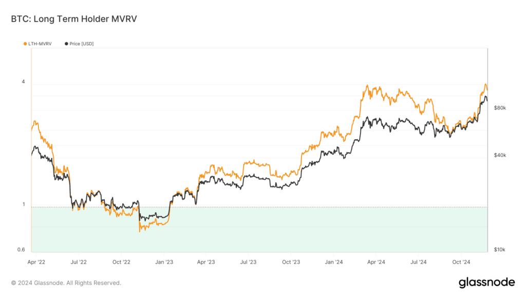 - Количество долгосрочных держателей в зоне прибыли продолжает расти.