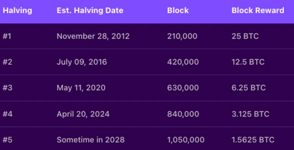 Даты халвинга биткоина и награды за блок. Источник: BitDegree