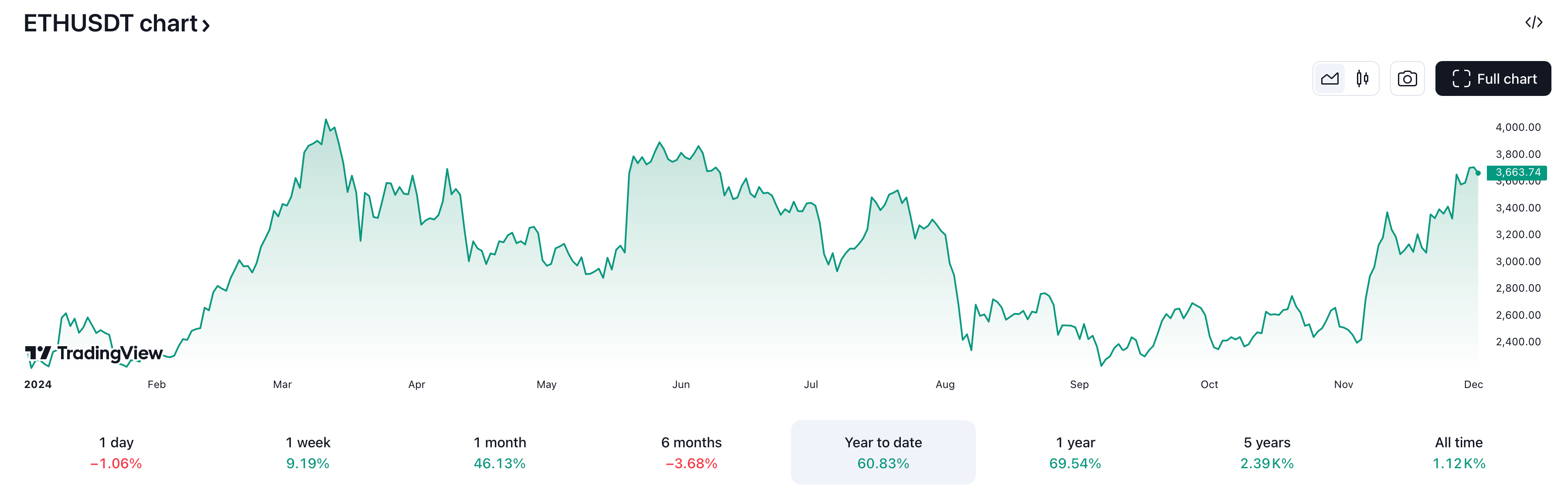 Изменение стоимости Эфириума ETH в 2024 году