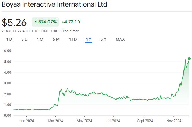 С момента принятия криптовалюты в свою казну Boyaa Interactive International увидела заметный рост стоимости своих акций. Источник: Google Finance.
