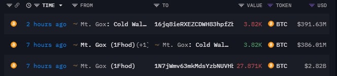 5 декабря 2024 года, со счета, принадлежащего обанкротившейся криптовалютной бирже Mt. Gox отправили 27 871 BTC на общую сумму более $2,82 млрд на два неизвестных кошелька, это следует из данных аналитической платформы Arkham Intellgence.