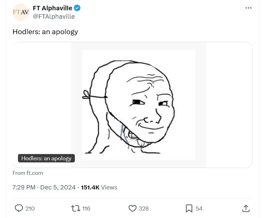 За долгий хейт к крипте в конце концов придётся извиняться – именно так поступили журналисты новостного издания FT Alphaville от Financial Times, хотя и сделали это в слегка странной манере.