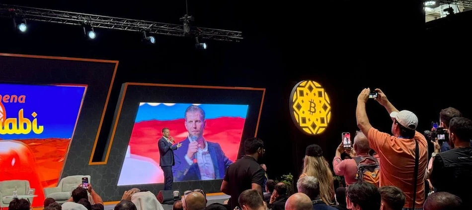 Эрик Трамп выступает с программной речью на конференции Bitcoin MENA в Абу-Даби.