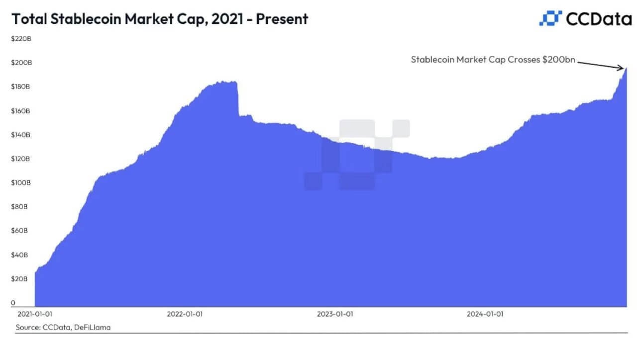 На данный момент с большим отрывом лидирующим стейблкоином по ряду показателей является USDT от компании Tether. Ну а общая капитализация стейблов накануне впервые в своей истории превысила отметку в 200 миллиардов, что подтверждает серьёзный спрос на такие активы.