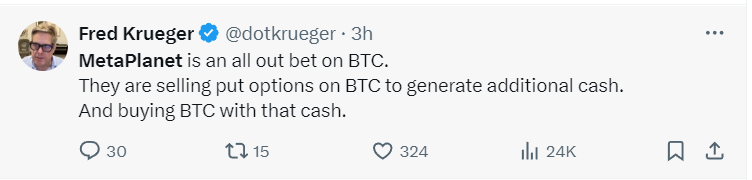 Metaplanet сообщает, что большая часть ее дохода была получена от продажи опционов пут на биткоин, что принесло 520 миллионов японских иен дохода.