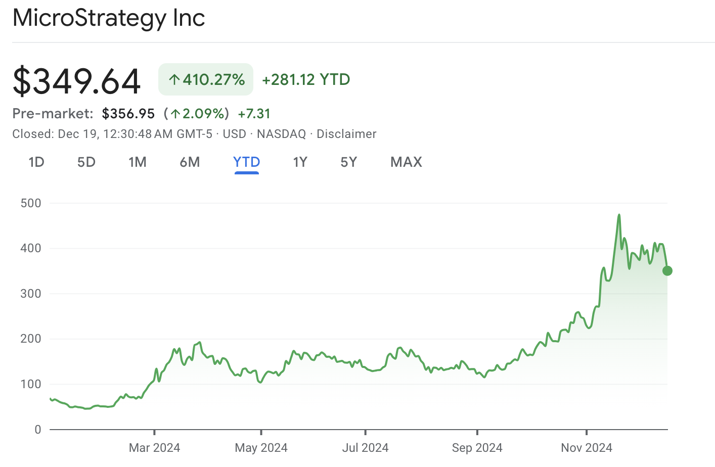 Бурный рост биткоина в этом году отразился на показателях MicroStrategy на фондовом рынке. С начала года стоимость акций MSTR выросла более чем на 460%.
