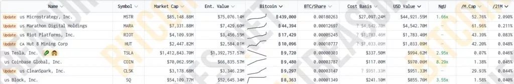 Согласно Bitcoin Treasures, MARA уверенно удерживает второе место среди корпораций по объему цифровых запасов. Компания уступает только MicroStrategy, которая накопила 439 000 BTC.