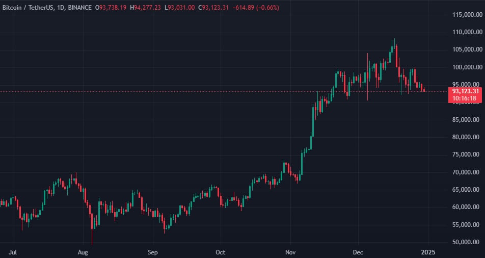 Отметим, на момент написания цена первой криптовалюты торгуется вблизи отметки в $93 000: