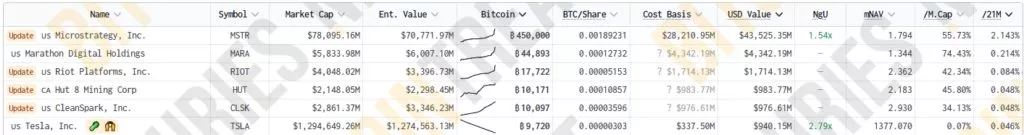 По данным Bitcoin Treasures, на момент написания биткоин на балансе хранят 19 частных и 77 публичных компаний.