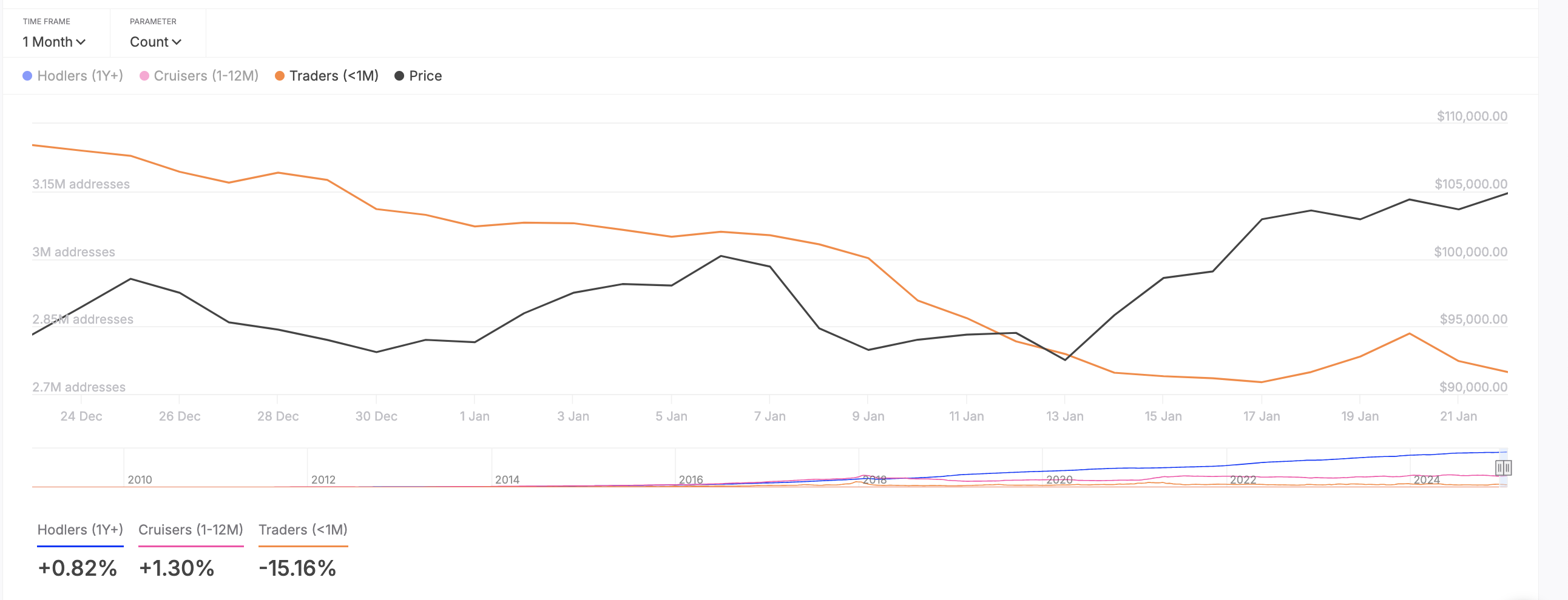 Когда розничные трейдеры сокращают время хранения, это сигнализирует о потере уверенности и повышенной осторожности в данной категории инвесторов. Это может привести к более частым циклам покупок и продаж, увеличивая волатильность рынка.