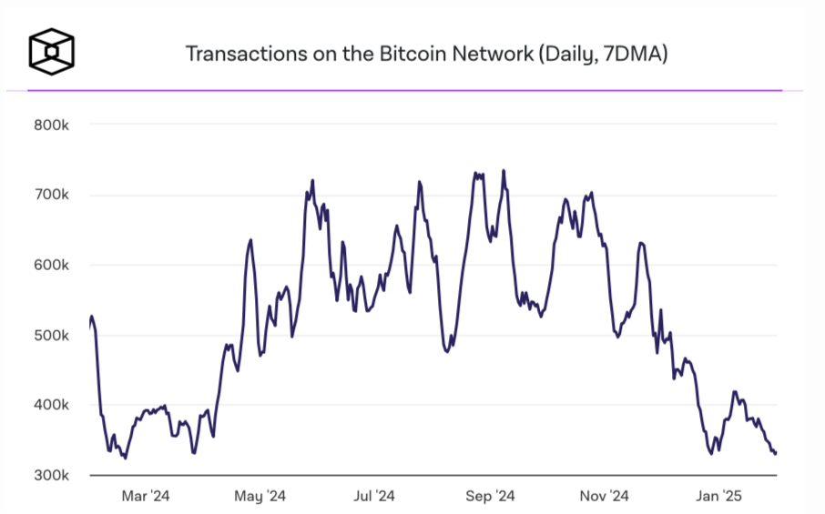 Количество транзакций в сети Биткоина в январе 2025 года опустилось до минимума за последние одиннадцать месяцев. В связи с этим наблюдается рекордное за последнее время снижение числа переводов в мемпуле: например, на прошлой неделе несколько блоков были почти пустыми. В целом снижение активности в сети становится проблемой для крупных майнеров, чей доход зависит от комиссий пользователей блокчейна. Сейчас некоторые майнинговые компании взялись искать альтернативные источники дохода по типу вычислений для искусственного интеллекта.