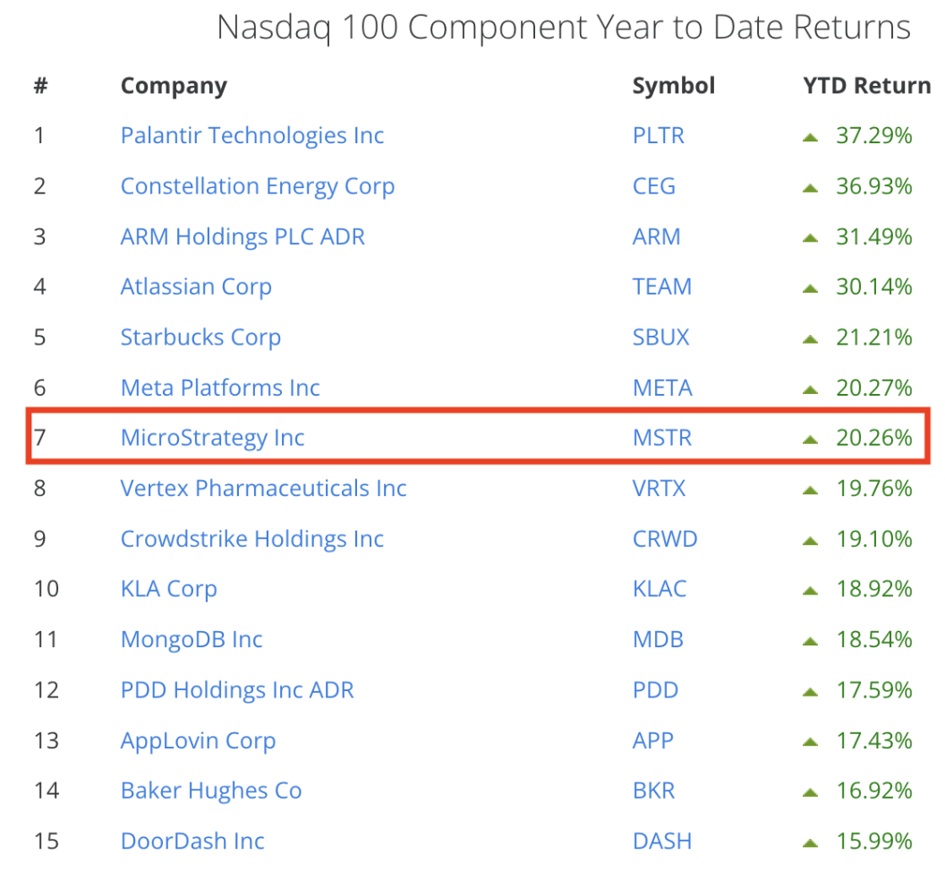 Стоит отметить, что акции Strategy с начала года показывают одну из лучших динамик среди компаний из индекса Nasdaq 100.