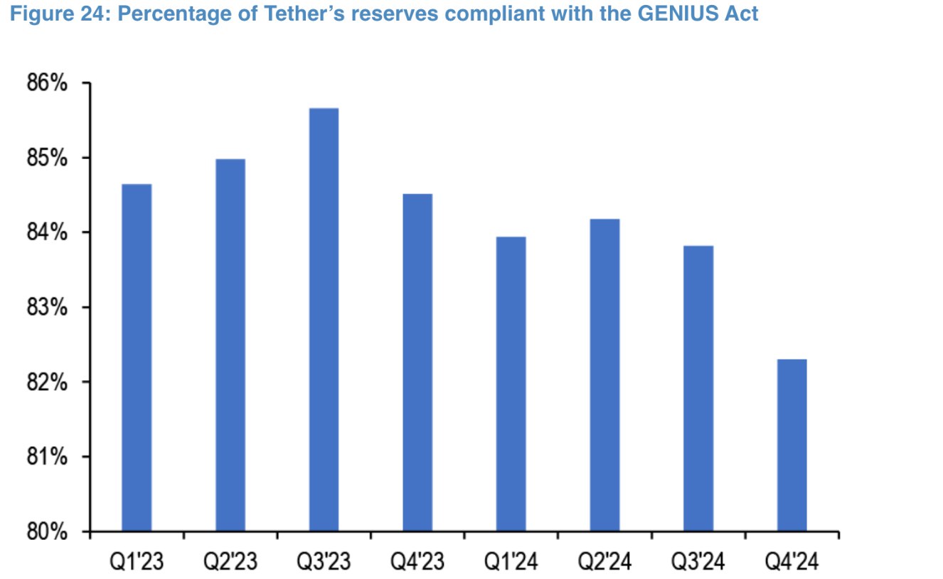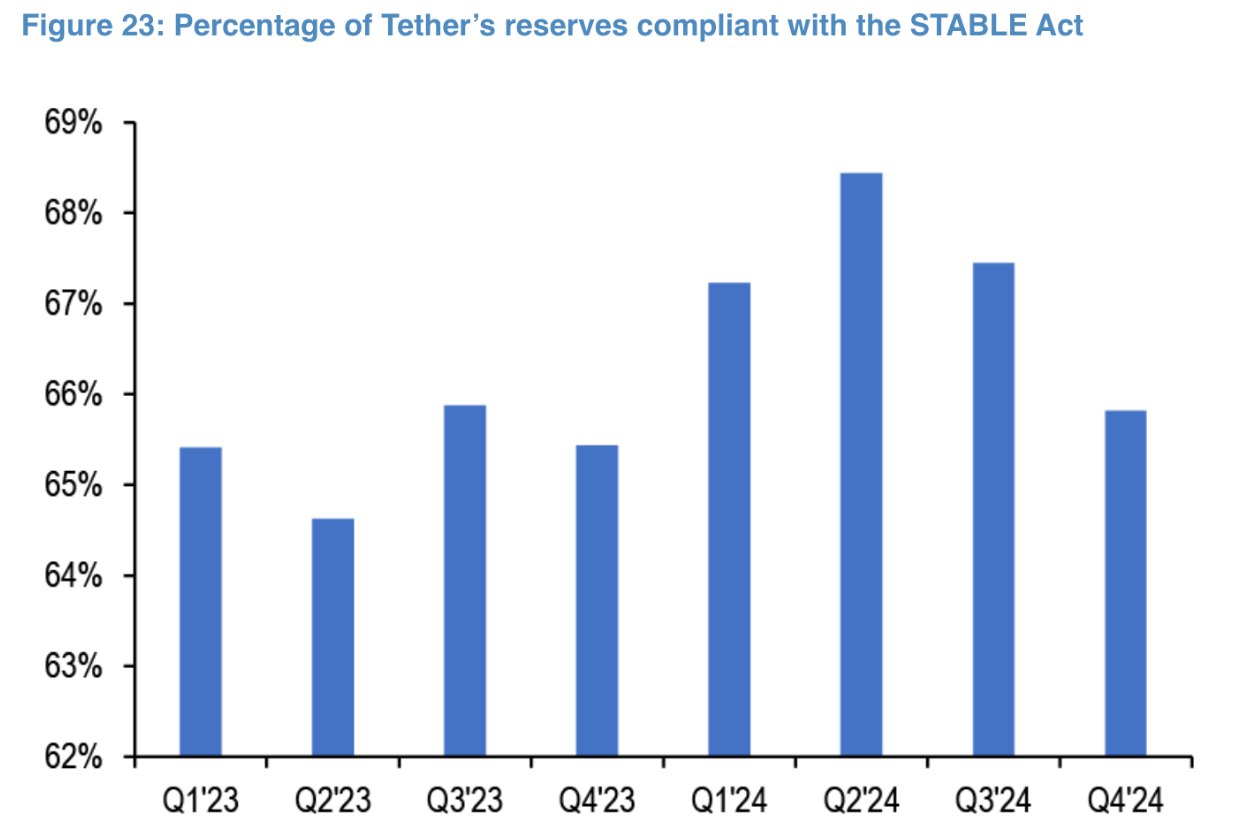 Как оказалось, согласно закону STABLE только 66% резервов Tether соответствуют требованиям, а согласно закону GENIUS — 83%.