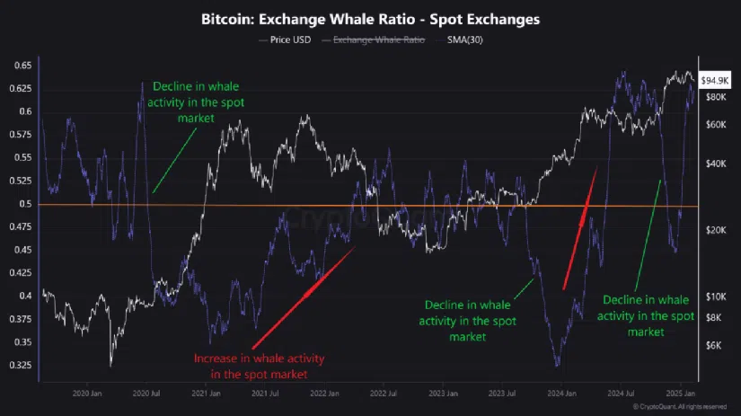 Bitcoin может быть на пороге новой фазы роста, поскольку активность крупных инвесторов на биржах продолжает расти. Данные аналитической платформы CryptoQuant показывают, что доля крупных транзакций на биржах достигла многолетнего максимума, что в прошлом часто предшествовало значительным скачкам цены.