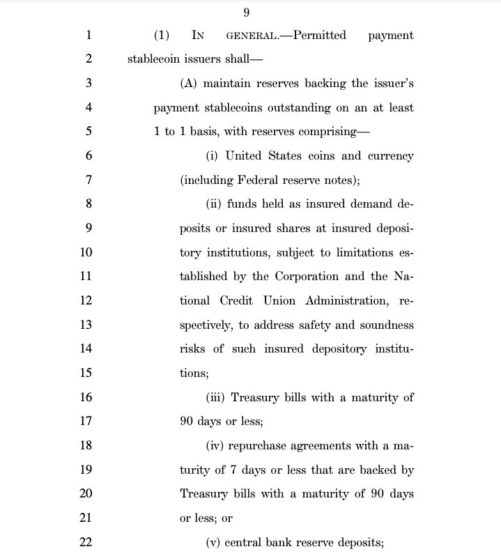 Аналитики JPMorgan под руководством Панигирцоглу подчеркнули, что требования к резервам в соответствии с законом STABLE являются более строгими, что позволяет эмитентам стейблкоинов держать только застрахованные депозиты, казначейские векселя США, краткосрочные казначейские REPO и резервы центральных банков. С другой стороны, законопроект Сената допускает дополнительные инструменты, такие как фонды денежного рынка и обратные REPO.