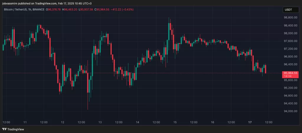 Сейчас первая криптовалюта торгуется по $95 960, за сутки снизившись на 1,4%. Недельное падение составило 1,2%.