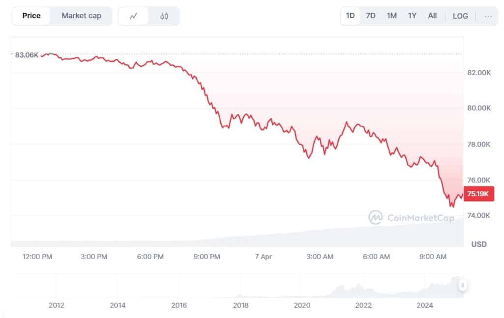 Вчера вечером курс биткоина перешел к стремительному обвалу, из-за которого в моменте он проседал до уровня ниже 75 000 долларов США.