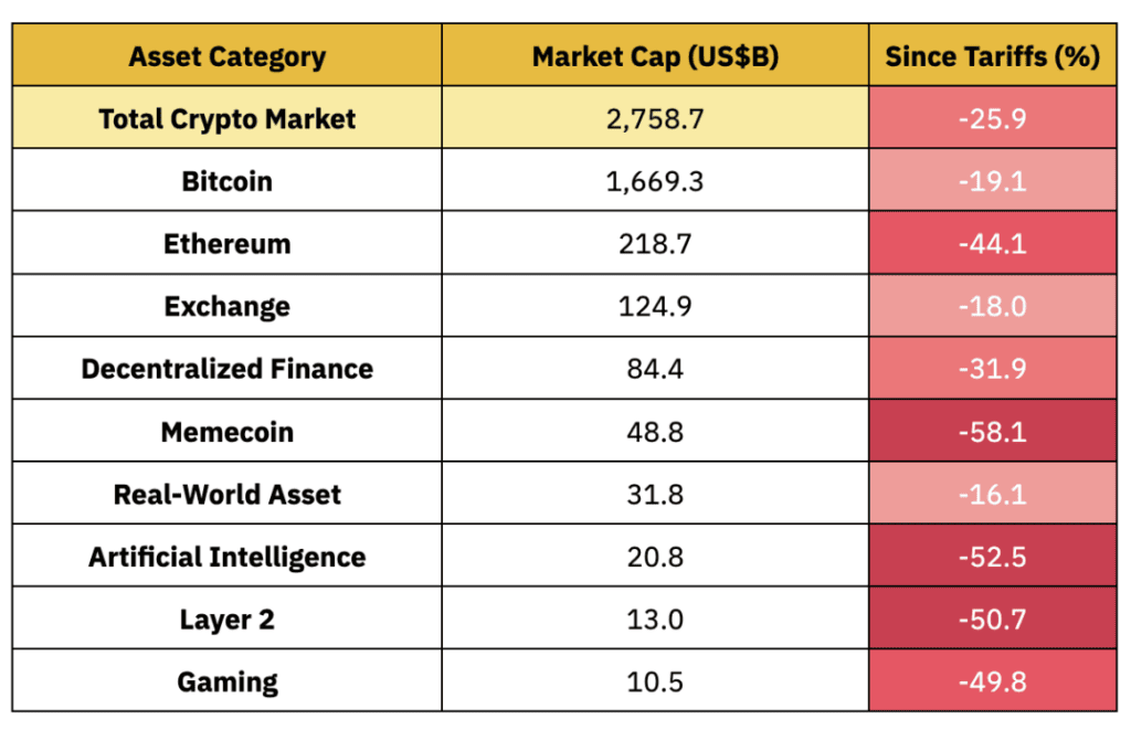 Самые агрессивные тарифы с 1930 года уже повлияли на экономику и крипторынок, а цифровые активы останется волатильным и чувствительным к новостям в краткосрочной перспективе, считают аналитики. Также они добавили, что смягчение политики ФРС может стимулировать рост, а прогресс или регресс в торговых переговорах также будут определять направление рынка.