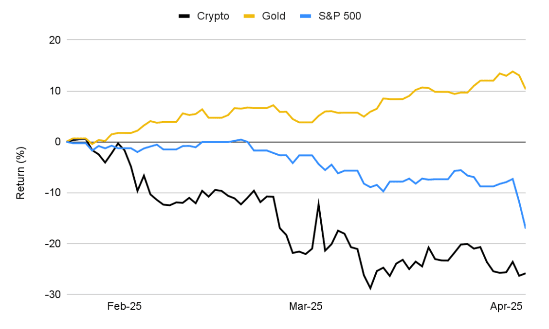 «Криптовалюты движутся синхронно с акциями, оба рынка в коррекции. Между тем золото и облигации растут как защитные активы», — сказано в отчете.