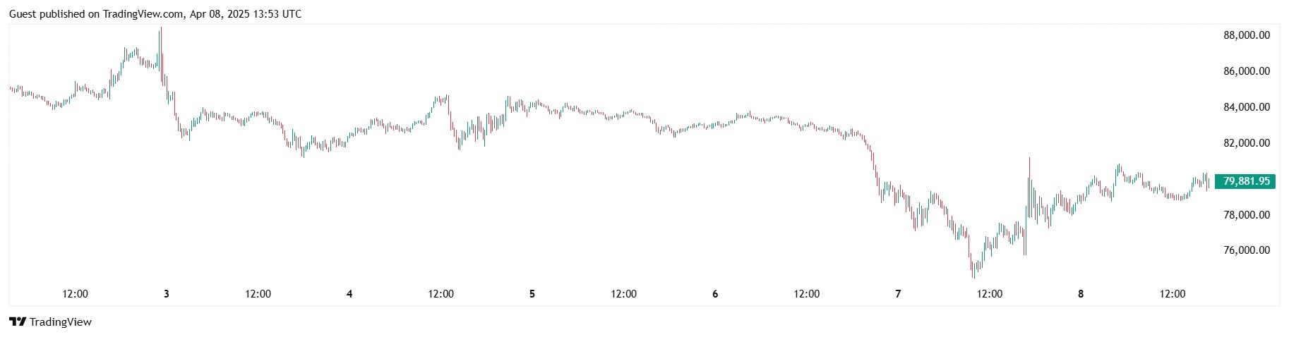 Напомним, 6-7 апреля на криптовалютном и фондовом рынках произошел обвал. Биткоин, в частности, в моменте просел ниже $75 000.