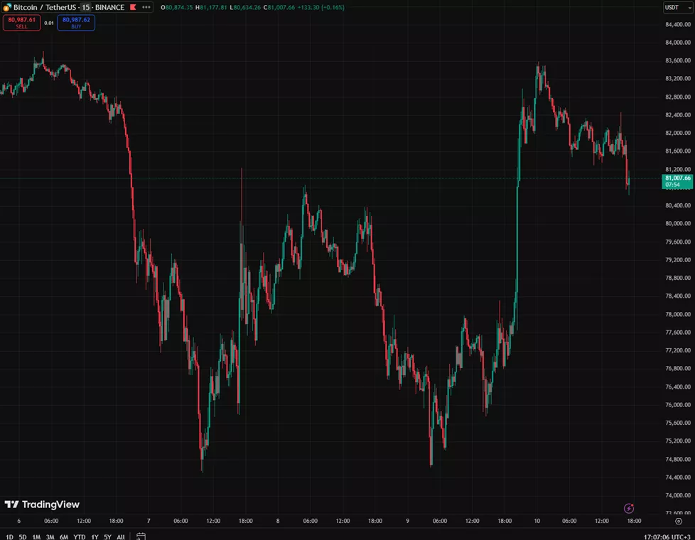 Выход макростатистики вызвал кратковременный скачок биткоина к $82 500. Затем котировки провалились к $81 000, сократив суточные темпы роста до 4,3%.