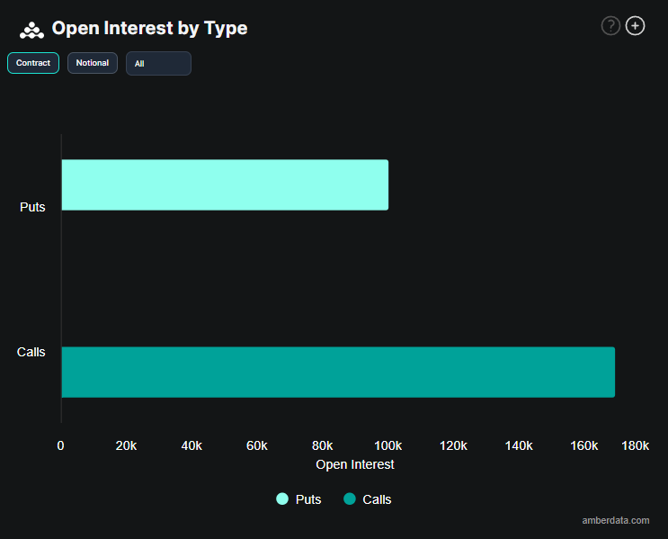 Данные об открытом интересе подтверждают оптимистичный настрой: колл-опционы сейчас лидируют на рынке с более чем 169 760 контрактами.