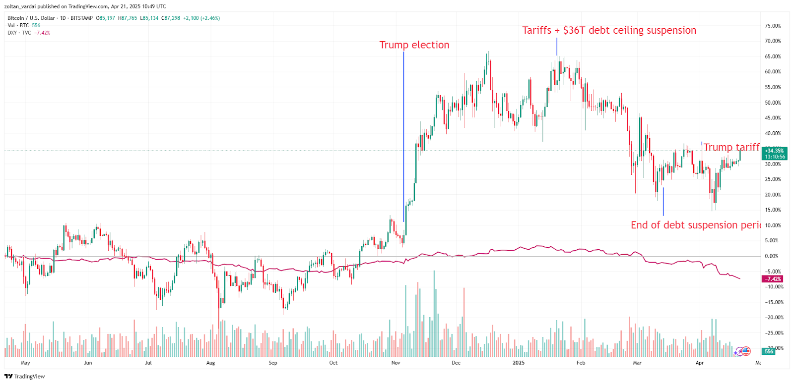 Биткоин ненадолго поднялся выше $87 700 впервые за почти три недели с тех пор, как президент США Дональд Трамп объявил о взаимных импортных пошлинах 2 апреля.