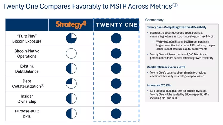 В презентации Twenty One Capital заявила, что ее бизнес-модель более эффективна для инвесторов по сравнению со Strategy.