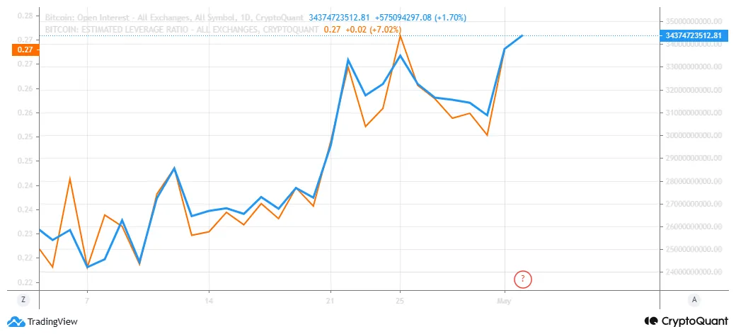 Открытый процент ETH и расчетный коэффициент кредитного плеча / Источник: CryptoQuant