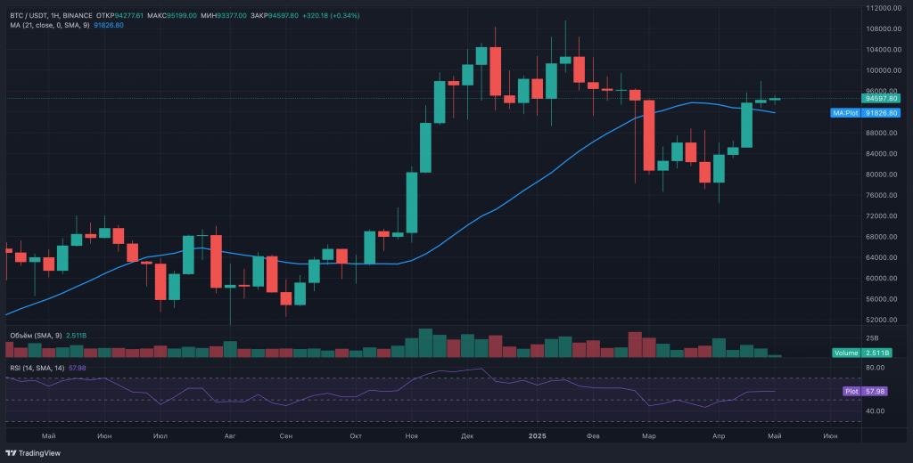 «В апреле биткоин присоединился к ралли золота, увеличив корреляцию впервые за несколько месяцев. Между 7 и 21 апреля золото выросло на +15% вместе с +12% ростом биткоина», — отметили аналитики в соцсети X.